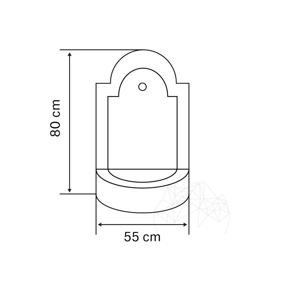 - dimensiunile de 80 x 55 cm, greutatea de 60 -70 kg si modul de executie a cismelei determina o forma echilibrata si stabila.