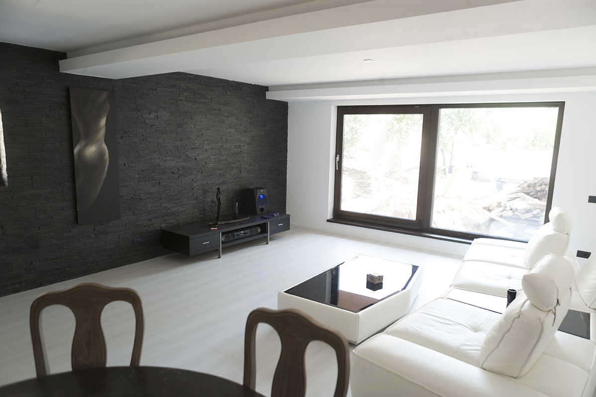 • pereti din piatra naturala, amenajarea unor asemenea pereti este o provocare intrucat necesita cunostinte de design interior dar si creativitate, in aceeasi masura, living-ul fiind si o camera de primire a oaspetilor, ceea ce presupune respectarea unor cerinte specifice de imagine
