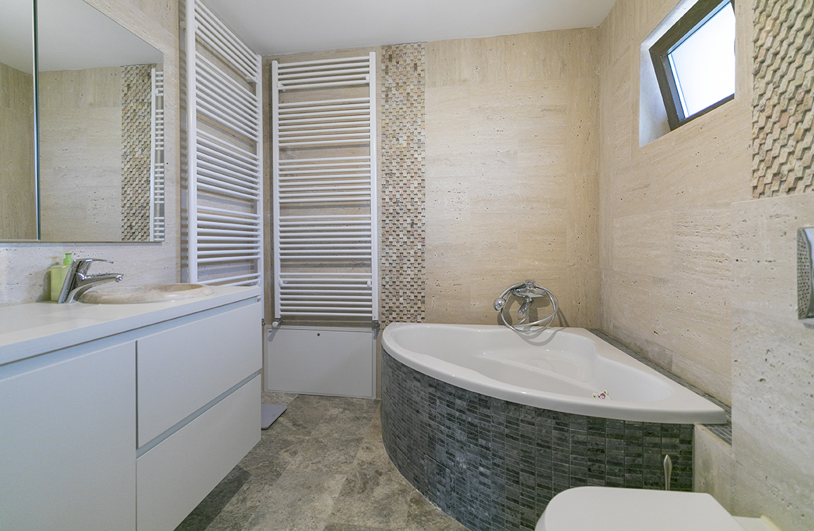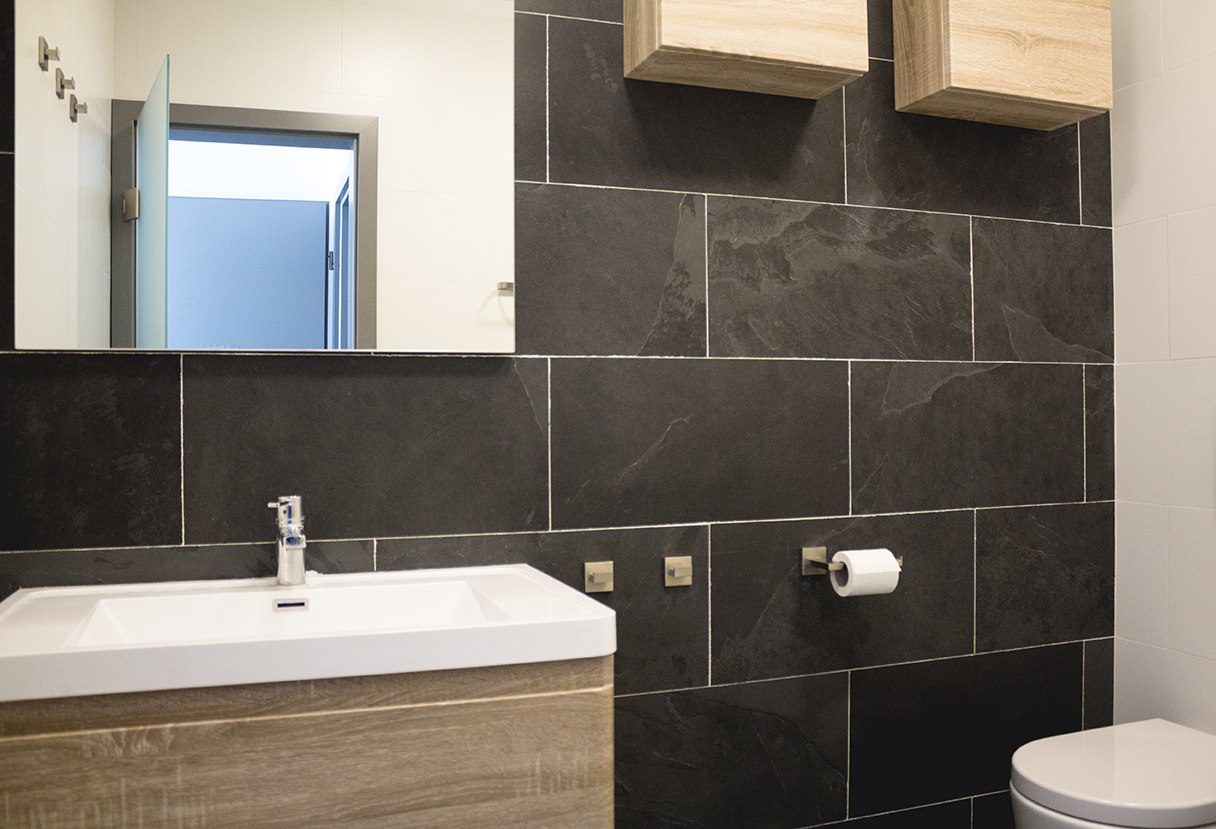 Amenajarea bailor de apartament reprezinta o problema a carei rezolvare nu este deloc usoara. Producatorii de obiecte sanitare au dezvoltat produse destinate unor astfel de bai insa acestea sunt in numar mic si, mai intotdeauna, design-ul lor este banal si nu corespunde cererilor clientilor. Bateriile pentru baile mici sunt, de regula, cu monocomanda, pentru economie de spatiu. Si aici formele sunt comune, iar variatiile de design minime. Rezulta ca este dificil sa personalizezi o baie mica. Solutia ar putea sta in placarea peretilor. Folosirea unor placi din piatra naturala nu doar ca ofera o valoare superioara baii, dar ii da acesteia si un accent personal, care sa o scoata din zona practicului si sa o transfere in cea a esteticului.