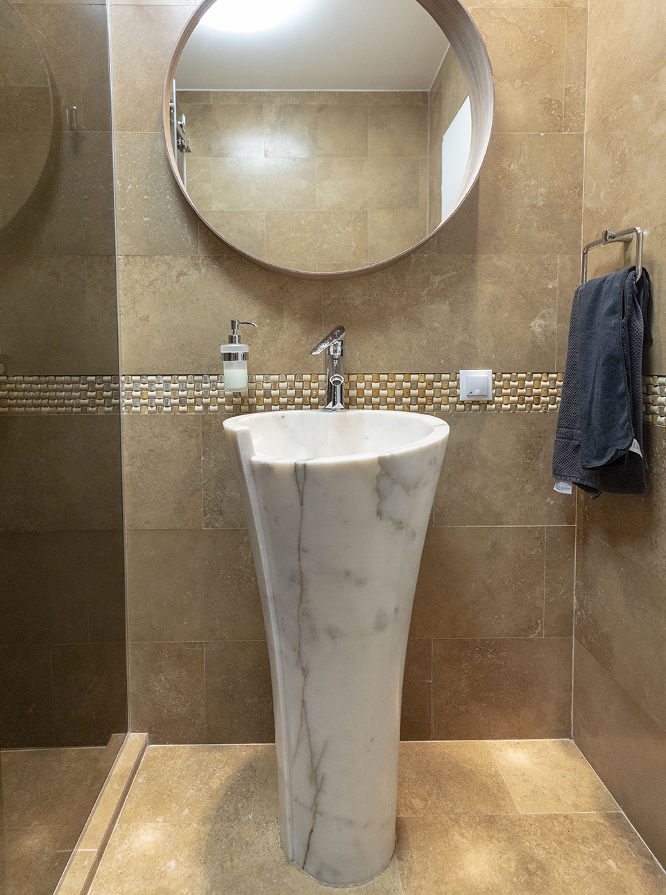 Lavoarul din piatra naturala in baie este suprema satisfactie estetica la care poti avea acces aici. Culorile, texturile, formele, fac din chiuvetele de baie din piatra naturala adevarate opera de arta cu care ne inzestreaza Pamantul.