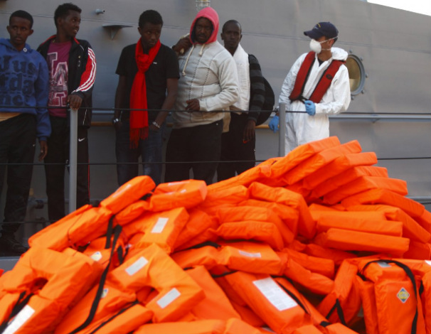 Poza din presa locala cu cele 28 de veste de salvare gasite pe tarm