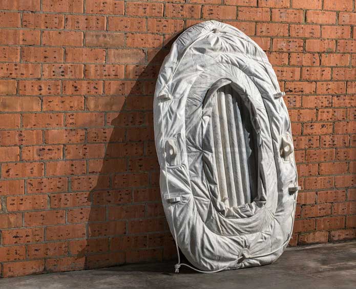 Instalatia face trimitere directa la un eveniment care avut loc in anul 2013, cand 28 de veste de salvare au fost gasite raspandite pe tarmul insulelor Cocos (parte a Australiei). Autoritatile au presupus atunci ca vestele ar fi fost de pe o ambarcatiune scufundata in larg, ambarcatiune care transporta refugiati iranieni sau afgani in cautare de azil in Australia.