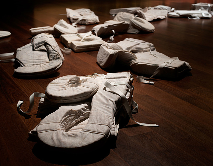 Instalatie numita “As for today…”, reprezentand 41 de steaguri impaturite, facute din marmura. Lucrare in memoria celor 41 de militari australieni care si-au pierdut viata in razboiul din Afganistan.