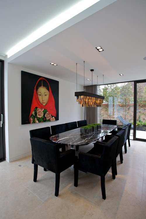 Pe lângă un blat de bucătărie din marmură, poţi crea o piesă memorabilă şi pentru spaţiul de dining – o masă cu blatul din marmură poate fi extrem de interesantă şi poate fi uşor de integrat în cam orice tip de amenajare. Şi măsuţa de cafea din zona de living poate avea un blat de marmură – dacă faci singur acest tip de piesă, trebuie să ai în vedere că ai de-a face cu un material destul de greu, deci masa ta trebuie să aiba picioarele rezistente.