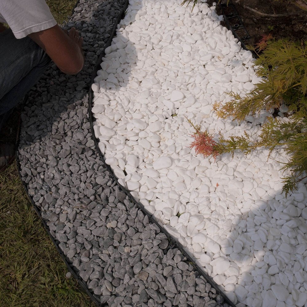 Creează grădina visurilor tale rapid și fără efort cu Deco Uni – separator gazon pentru amenajări grădini cu piatră decorativă, pebbles și marmură albă Thassos!