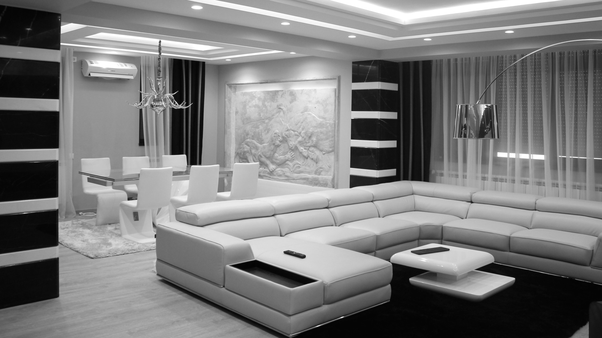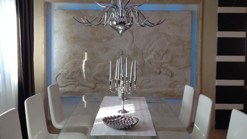 Basorelief in proiectul Living - dinning in apartament 150 MP, sursa foto: Pangrati Design