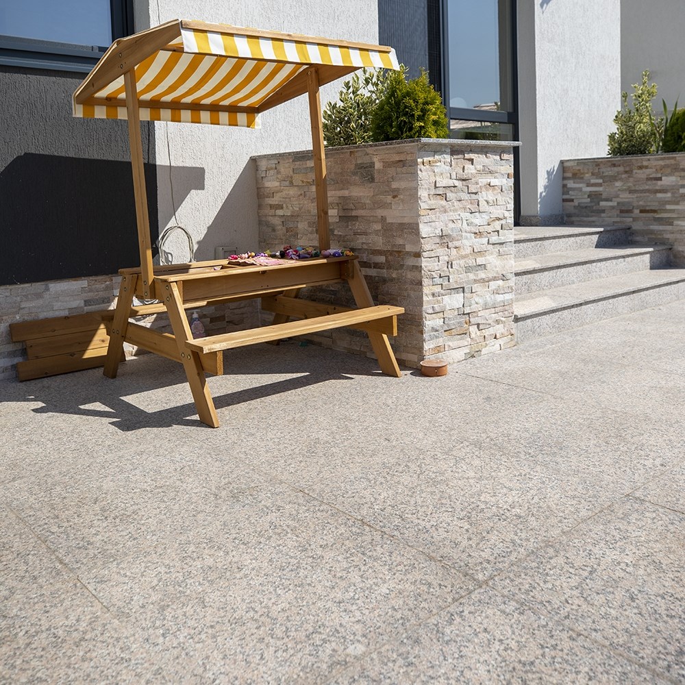 Produs nou în colecția PIATRAONLINE, granitul Santa Rossa cu finisaj fiamat surprinde in cele mai neasteptate feluri. Datorita coloritului bogat si vesel, aceasta piatra naturala se poate folosi in amenajarile in care aceasta sa fie piesa centrala. Esti in cautare de granit pentru casa ta? Coloritul bogat si vesel face aceasta piatra naturala potrivita pentru amenajarile in care ea este piesa centrala. Finisajul acestui granit a fost obtinut prin care piatra naturala este supusa arderii la o temperatura de 2000 de grade Celsius, astfel ca ea capata o suprafata rugoasa. In urma acestui procedeu, smaltul granitului sare, iar placa inregistreaza o variatie a grosimii de 1-5 mm. Unde poti folosi granitul Santa Rossa? Foloseste-l in nenumarate spatii, atat in intimitatea casei, cat si in spatiile publice. Granitul Santa Rossa este de o calitate exceptionala, fiind rezistent si usor de asociat din punct de vedere cromatic cu alte elemente de decor.