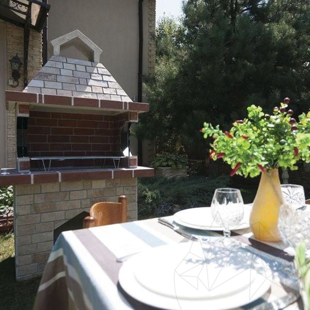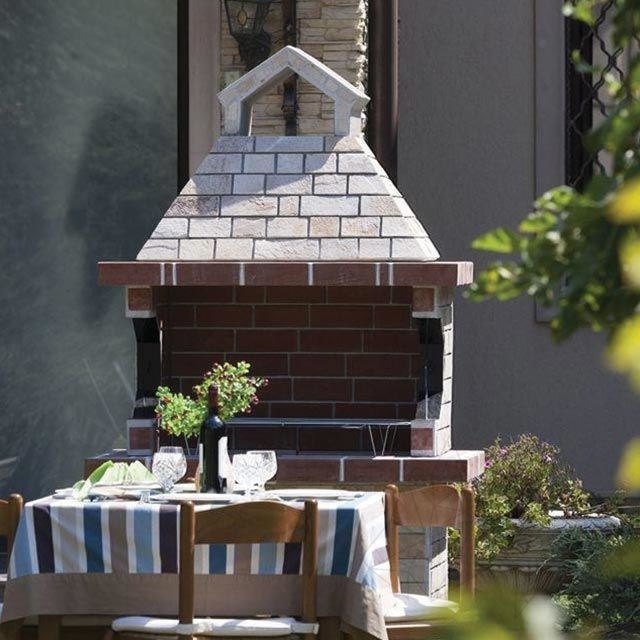 Gratar Gradina Mediteraneo Mediu (Carbune/Lemn, 120x70x210 cm, 800 kg, piatra naturala Rhodos, caramida)