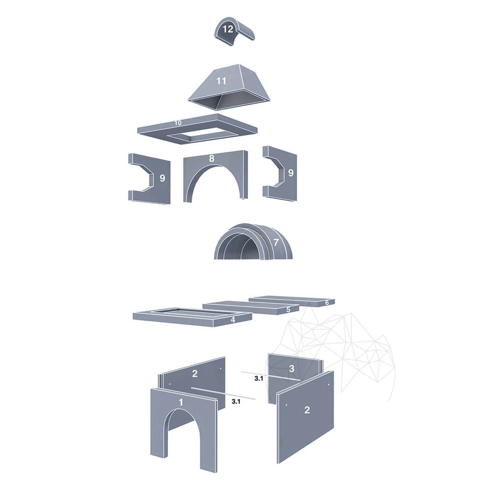 Instructiuni de izolare a cuptorului: Cu cat izolatia este mai buna, cu atat caldura se pastreaza mai mult, iar cuptorul functioneaza mai eficient. De aceea iti punem la dispozitie un accesoriu separat, acoperisul pentru cuptor care va fi amplasat in partea de sus a cupolei. Spatiul gol ramas urmeaza a fi umplut cu un amestec de sare si nisip cu quart, in proportii egale. O alta optiune de izolare o reprezinta folosirea vatei de sticla si a plasei de sarma hexagonala, acoperite cu un amestec ignifug, cum este samota.