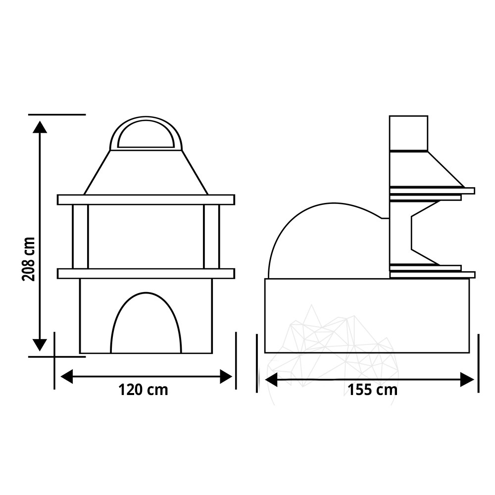 Gratar + Cuptor Integrat Traditional (Carbune/Lemn, 208x120x155cm, 1200kg, piatra naturala Kavala, caramida)