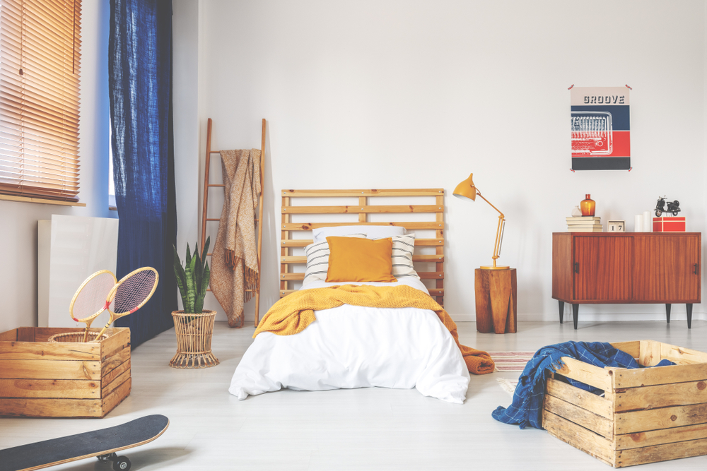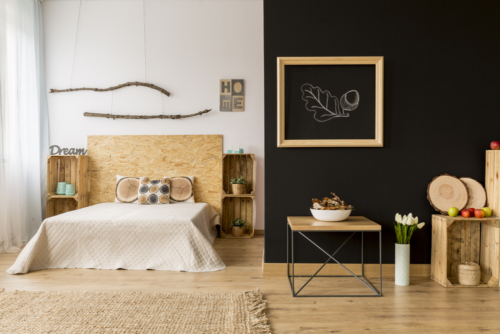 Stilul rustic este inspirat din natura, motiv pentru care elementele naturale se regasesc adesea in amenajarea unei astfel de incaperi. Principalul element folosit in acest stil de amenajare este lemnul, motiv pentru care iti sugeram sa te orientezi spre un mobilier din lemn masiv. Alege un pat cu tablie de lemn, o paleta cromatica de culori inspirate din natura precum verde, galben sau maro.