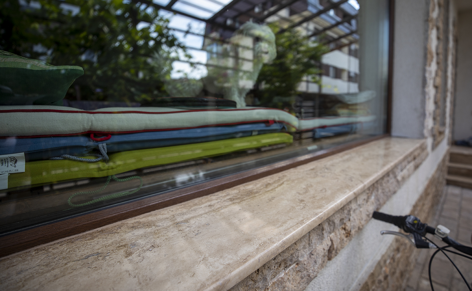 • se traseaza pe lastra din piatra conturul glafului, conform masuratorilor efectuate