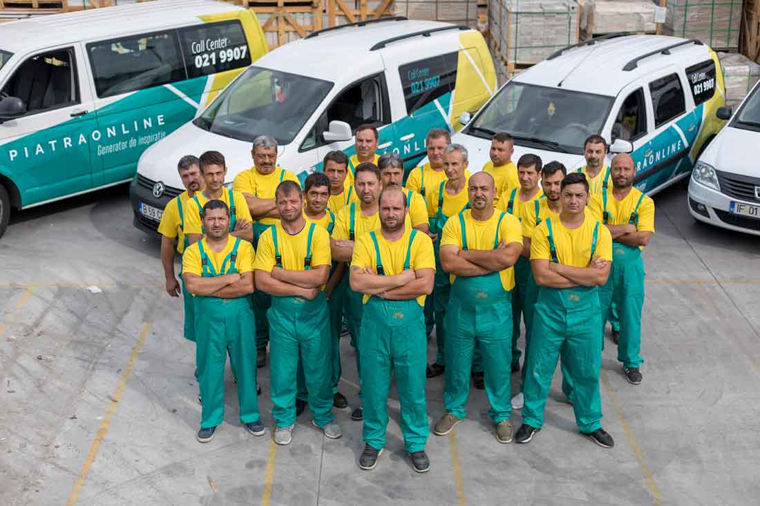 Tinand cont de specificul lucrarii se va crea o alta echipa pentru montajul pietrei poligonale in exterior. In anumite situatii dupa montaj poate fi necesara chituirea. Piatra poligonala are forme si grosimi diferite de aceea sunt necesare abilitati sporite si o mai mare experienta de montaj.