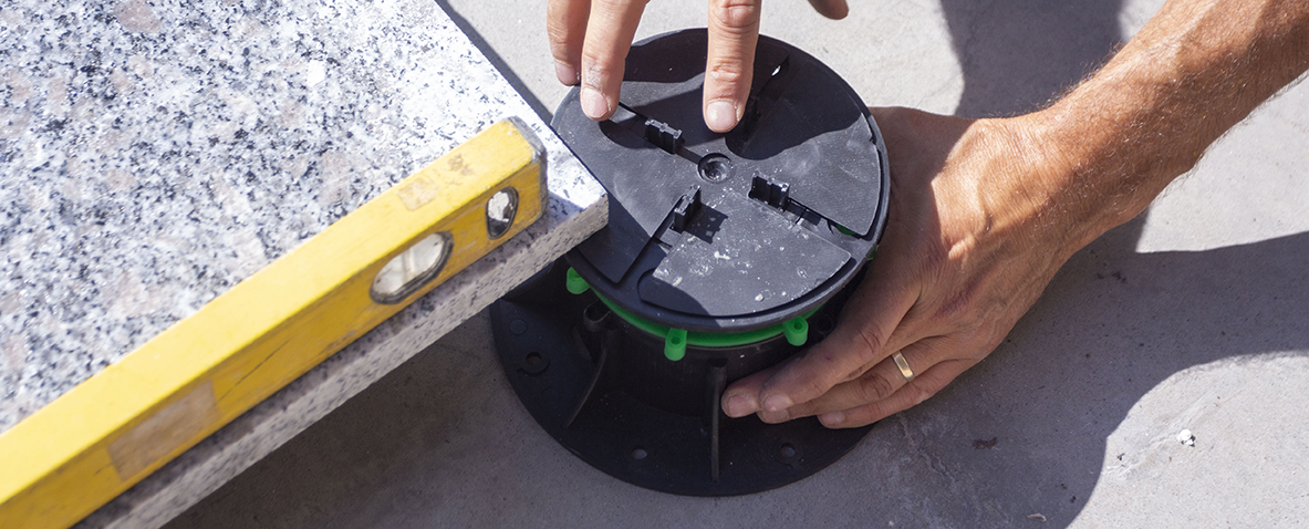 • destinat sustinerii pardoselilor de exterior din lemn, piatra, ceramica, metal, compozit, fibra de sticla. Se monteaza pe substrat stabil sau pe panouri izolante.
