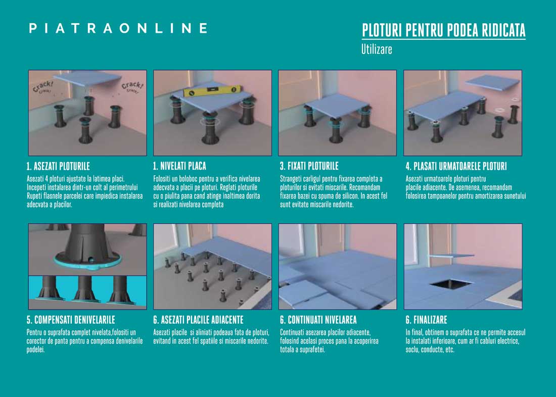 Ploturile se folosesc la construirea pardoselilor flotante (inalte, tehnice). Sunt executate in principal din polipropilena, sunt rezistente la ultraviolete, la mari variatii de temperatura si la agenti corozivi. Au diverse dimensiuni, suporta greutati mari si sunt ajustabile.