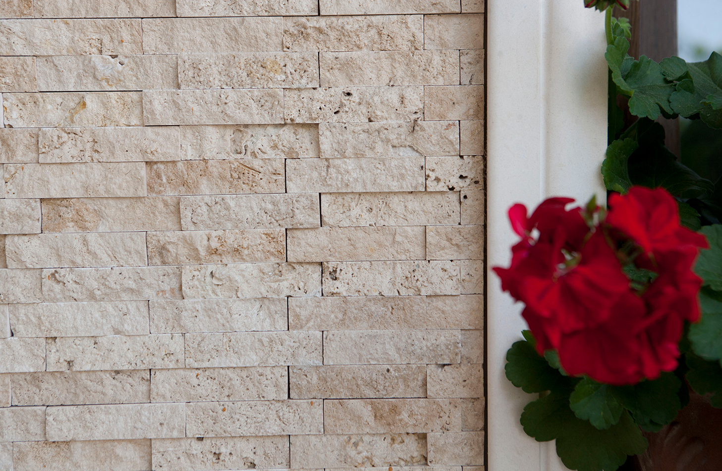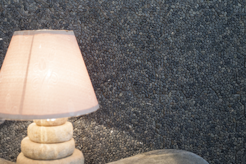 Uneori, cand se doreste un echilibru , sunt adoptate montajele clasice, piatra langa piatra si toate de forma patrata, cum ar fi mozaicul din travertin Silver antichizat sau cel din marmura Rodon, alteori sunt adoptate variantele moderne, cu efecte surpriza ca pebble Black sau onix Crazy paving.