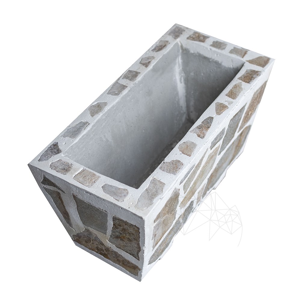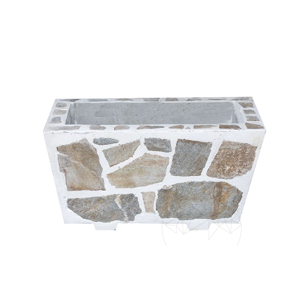 Jardiniera Rustica din Beton, 30x60 cm - Placata cu Piatra Poligonala Rhodos | Ideala pt Flori în Gradina, Terasa si Ale