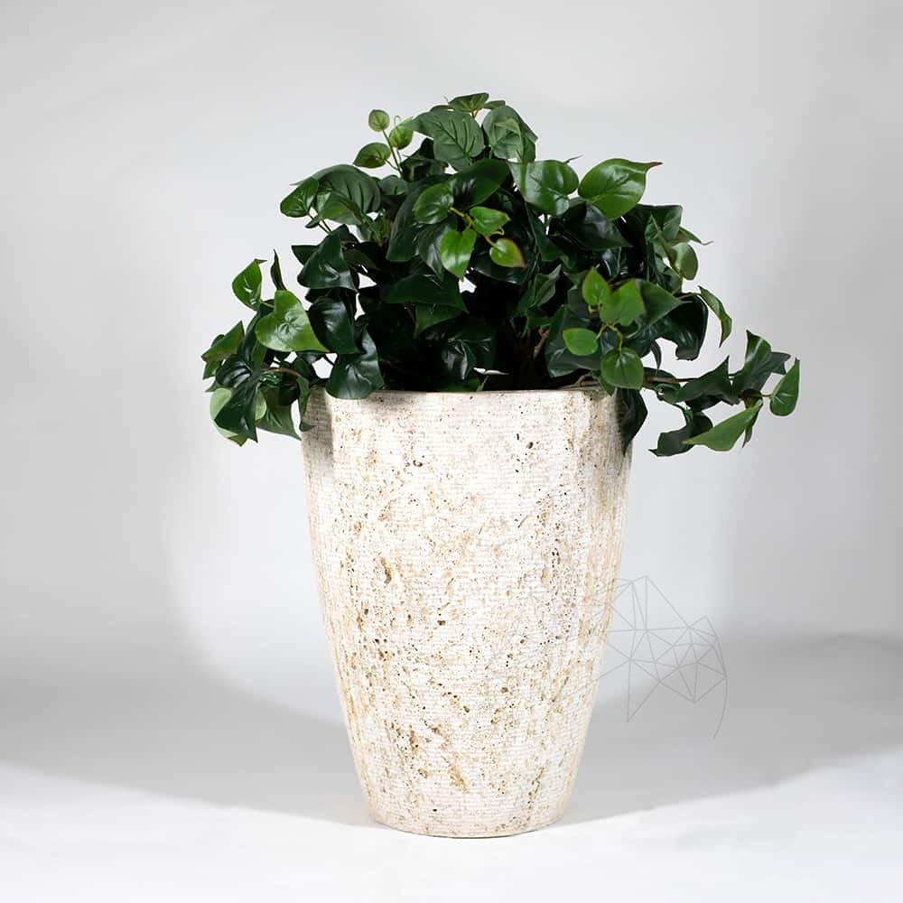 Jardiniera din travertin Classic, cu forma amintind de amforele antice si finisaj Rizat, apare ca un volum elegant si usor de asortat in gradina ta.  Nuantele de pamant si textura autentica accentueaza aspectul unic al travertinului si permit asocierea produsului in amenajari speciale. Un trunchi de con gratios, purtator al unor plante adunate intr-o asociere fireasca, se evidentiaza in gradina ta, ca un accent firesc al perenitatii.