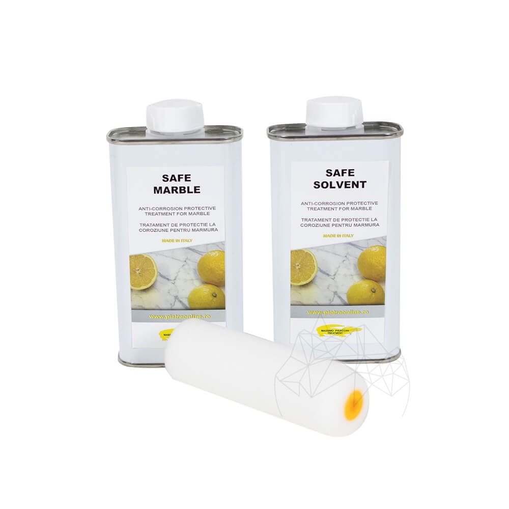 Ambalare: pachet continand 2 solutii: Safe Marble si Safe Solvent, hartie de curatat rola trafalet, instructiuni de utilizare. Se livreaza cu trafalet.