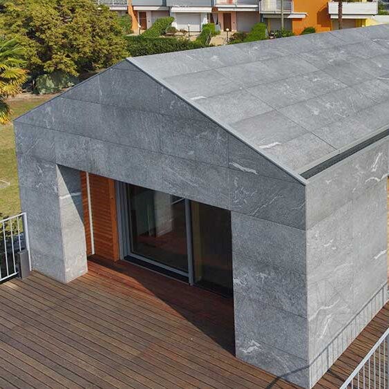 Piatra sinterizata L'ALTRA PIETRA Colosseo Grigioni reprezinta o solutie optima pentru amenajari exterioare, imitand cu succes aspectul natural al granitului elvetian Onsernone. Este ideala pentru spatii care cer un material durabil si estetic placut.