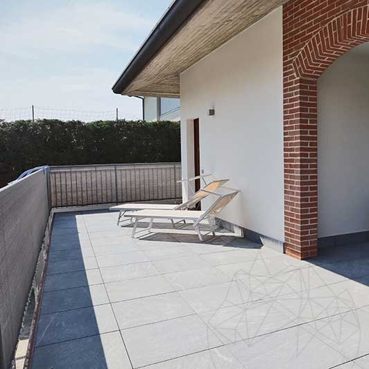 Materialul este extrem de rezistent la intemperii, uzura si sarcini grele, fiind potrivit pentru trafic mediu. Datorita tratamentului antiderapant, garantam siguranta in utilizare, facandu-l ideal pentru terase, fatade, garduri, socluri, piscine si alte pavaje exterioare.