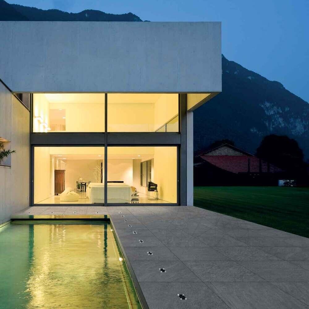 Dolomiti Grigio este perfecta pentru exterior, atat pentru aplicatii orizontale, cat si verticale, datorita rezistentei sale la factori de mediu si usurintei in intretinere.