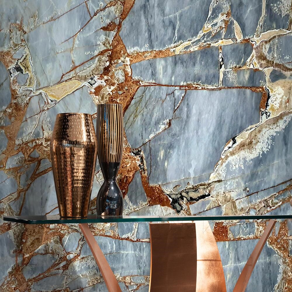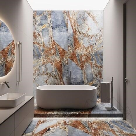 • Fiecare placă de marmură Fantastic Blue este unică, oferind un caracter distinct și exclusivist fiecărui proiect de design interior.