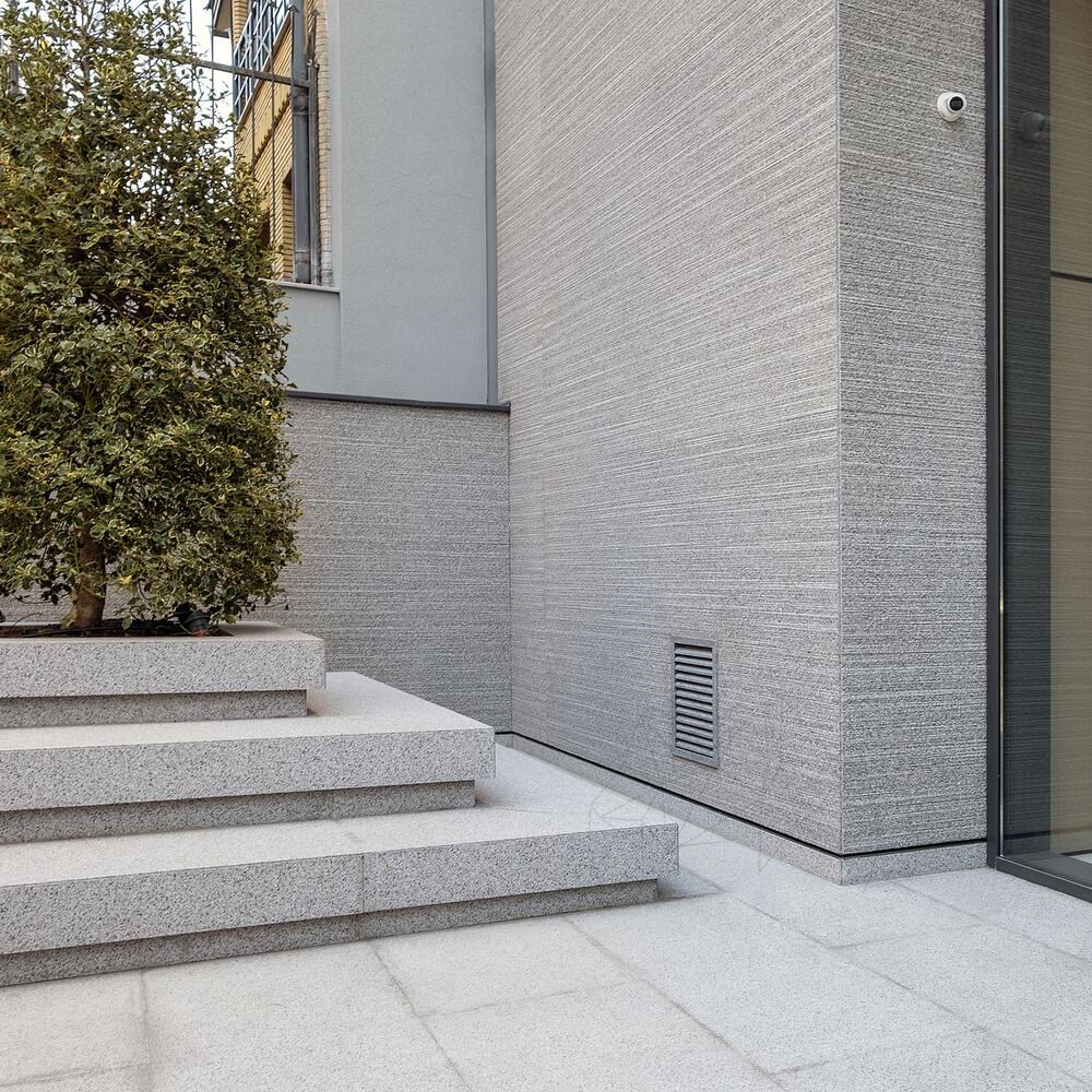 Pardoseli și trepte: Granitul periat (leather finish) sau mat adaugă un finisaj elegant și rezistent, perfect pentru pardoseli de interior și trepte exterioare sau interioare.