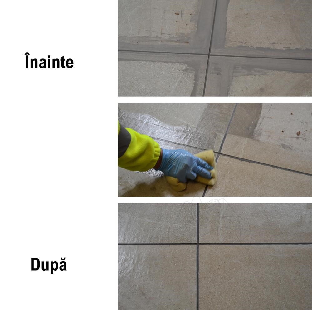 LTP Grout Stain Remover, este un detergent produs profesional ce indeparteaza resturile de chit, mortar, urme de ciment eventual rugina de pe suprafetele rezistente la acizi (granit, ardezie, varietati de sandstone si onyx, quartzit, placi ceramice, teracota, caramida). Testati solutia pe o zona mai putin vizibila inainte de aplicarea generala.