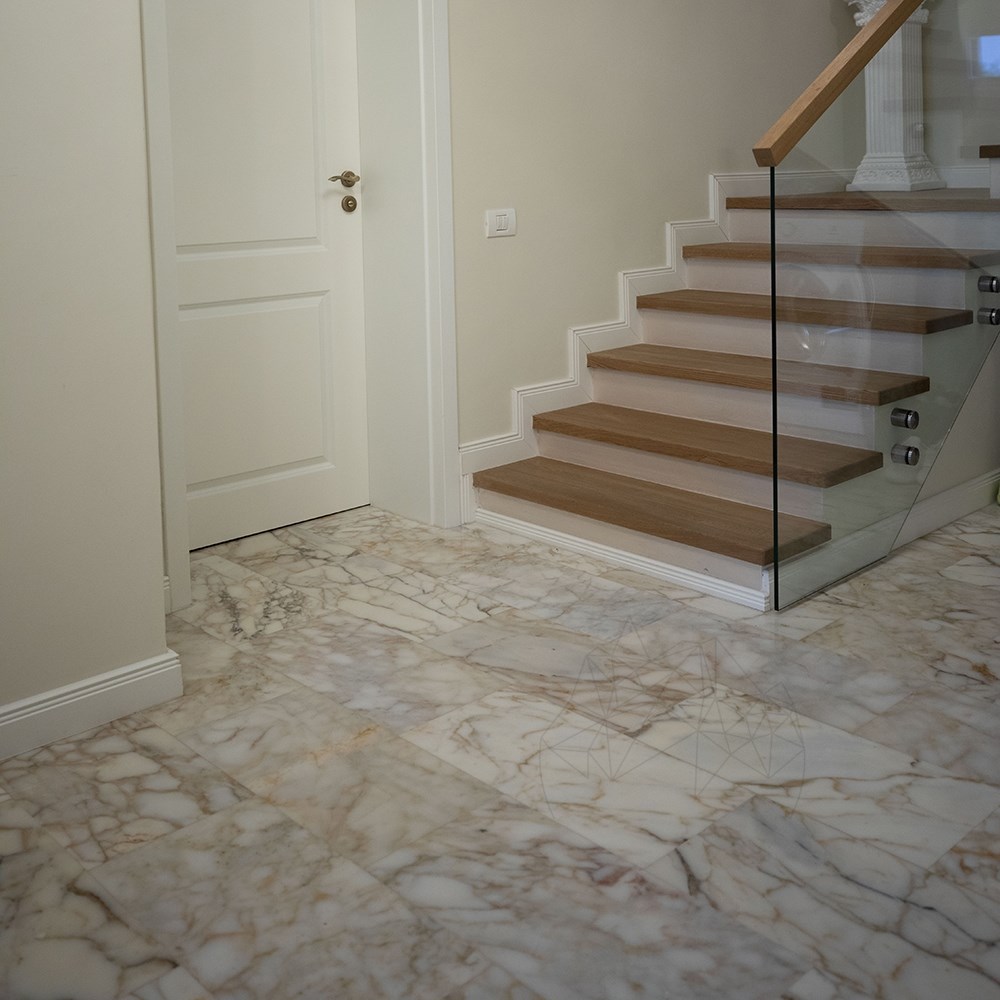 Marmura Arabescato Oro se recomanda pentru placari orizontale si verticale (iar daca se doreste, se poate monta pe o structura metalica, cu o sursa de lumina in interior – LED-uri). Recomandata pentru placarea pardoselilor in proiectele de amenajare pentru interior si exterior si placare la exterior pe terase, intrari, socluri si garduri marmura este o roca metamorfica formata din roci sedimentare de tip limestone sau dolomita supuse la temperaturi si presiuni extreme. Din calcar se formeaza marmura, definita prin intercalarea granulelor de calcit si dolomita.