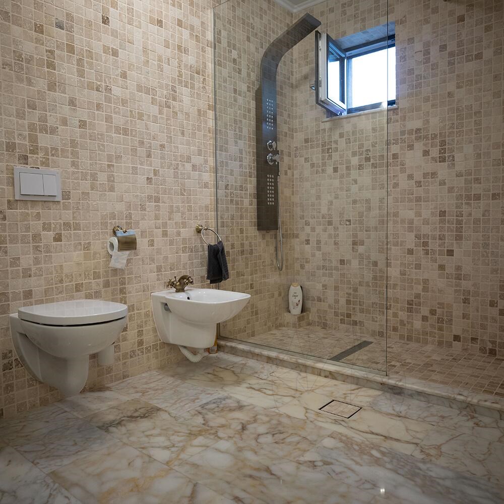 Arabescato Oro translucida, cu accente aurii, indeplineste cu prisosinta toate conditiile pe care le gandesti pentru o amenajare din clasa Premium.