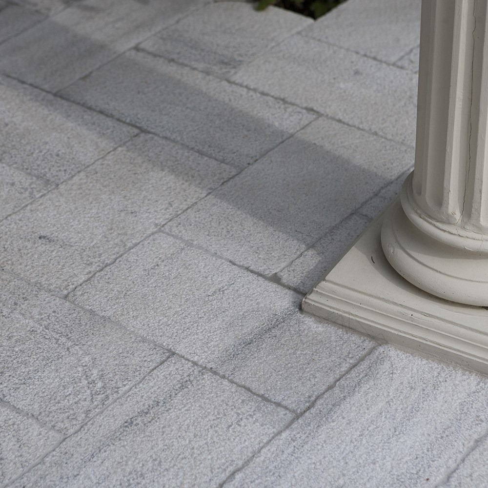 Cand vine vorba despre amenajarea curtii sau a gradinii, ia in calcul pavarea cu piatra cubica din marmura, un produs care nu numai ca aduce un plus de farmec spatiului, dar rezolva si importante probleme de utilitate. De o rezistenta si un rafinament nemaintalnite, piatra cubica din marmura Kavala cu finisaj buceardat poate fi folosita in pavarea gradinilor, a aleilor, a teraselor acoperite si neacoperite, a locurilor de parcare, atat in spatiile private, cat si in cele publice. In spatiile publice, piatra cubica din marmura Kavala este potrivita pentru aleile de parc, ronduri, piatete, acolo unde exista trafic mediu si intens. Acest material se monteaza ca orice alta piatra cubica: pe pat de nisip/pietris sau pe sapa semi-umeda si se rostuieste cu nisip fin sau cu lapte de ciment. Suprafata buceardata subliniaza naturaletea pietrei. In cazul marmurei Kavala Cross Cut, acest finisaj buceardat descopera o combinatie unica intre caracterul brut al pietrei si delicatetea ei. In plus este vorba si de o cromatica speciala, bazata pe tonuri de alb-gri variate. Astfel, placile de marmura Kavala Buceardata infrumuseteaza intr-un mod inedit atat amenjarile exterioare, cat si cele interioare. Datorita finisajului, in spatiile interioare, aceste placi se folosesc doar vertical, conferind proiectelor un aer neconventional, potrivite pentru proiecte moderne, provocatoare. In amenajarile exterioare, aceste placi cu grosimea de 2 cm uimesc, fiind folosite la placarea orizontala a teraselor, pavajelor, piscinelor, aleilor etc. Montate vertical, placile de marmura Kavala buceardate confera farmec cand sunt utilizate si la realizarea gardurilor, soclurilor, fatadelor si altele. Robustete si eleganta!