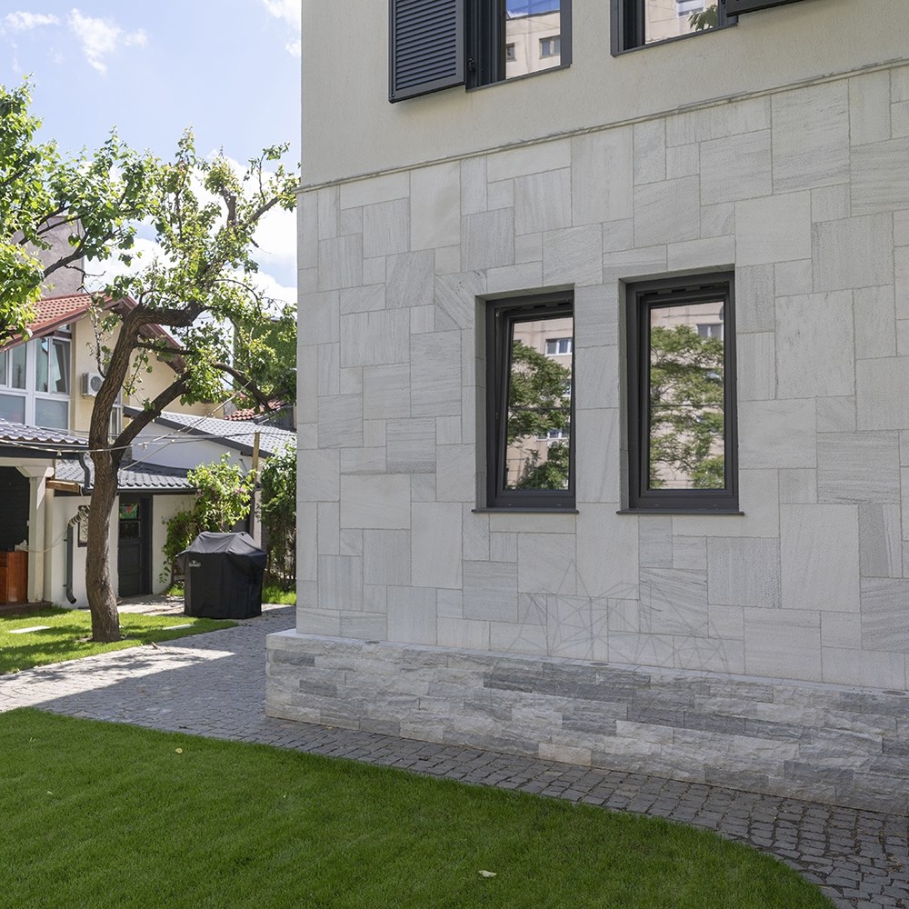 Versatilitate ridicată: utilizat pentru pavaje, placări fațade, blaturi, glafuri, trepte; ideal pentru proiecte rezidențiale și comerciale unde estetica și funcția merg mână în mână.