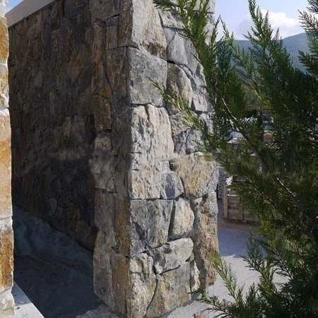 Marmura este o roca metamorfica des folosita ca material de constructie. Varietatea Akron are o culoare albastru-cenusie cu tente maro-galbui, oferind un aspect rustic aidoma celui de pe tarmul Mediteranei. Grosimea pietrei are o fluctuatie dimensionala larga, fara sa depaseasca de obicei 5 cm. Fetele expuse ale pietrelor sunt nefinisate, iar fetele destinate lipirii pe suport sunt netede pentru a facilita montajul. Aspectul final este robust si functional. Se poate monta cu rosturi sau fara. Se foloseste pentru fatade, garduri, stalpi, pereti sau ca decoratiuni, la interior sau la exterior. Se executa si coltare din aceeasi piatra astfel incat montajul final sa sugereze un proiect unitar, realizat cu totul din piatra. La coltare se practica o decupare interioara pentru a inchide peretele .
