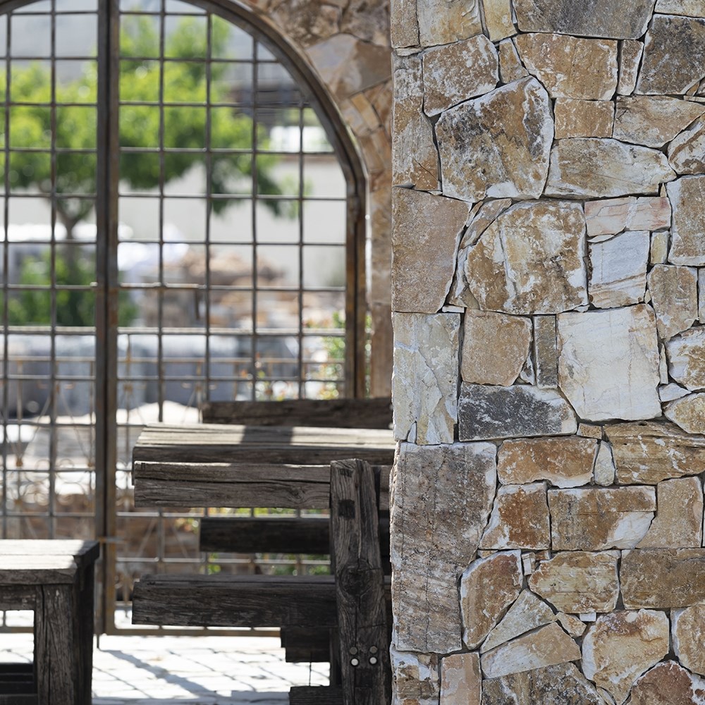 Piatra naturala garanteaza un aspect unic in fiecare coltisor. Aceste coltare executate din marmura poligonala Pepem sunt taiate in interior la 90 de grade, pentru a imbina la unghi drept zidurile placate cu marmura de acelasi fel. Marmura poligonala Rock Face Pepem este una dintre solutiile perfecte pentru placarile cu tenta rustic-mediteraneeana, in nuante de crem si maroniu.