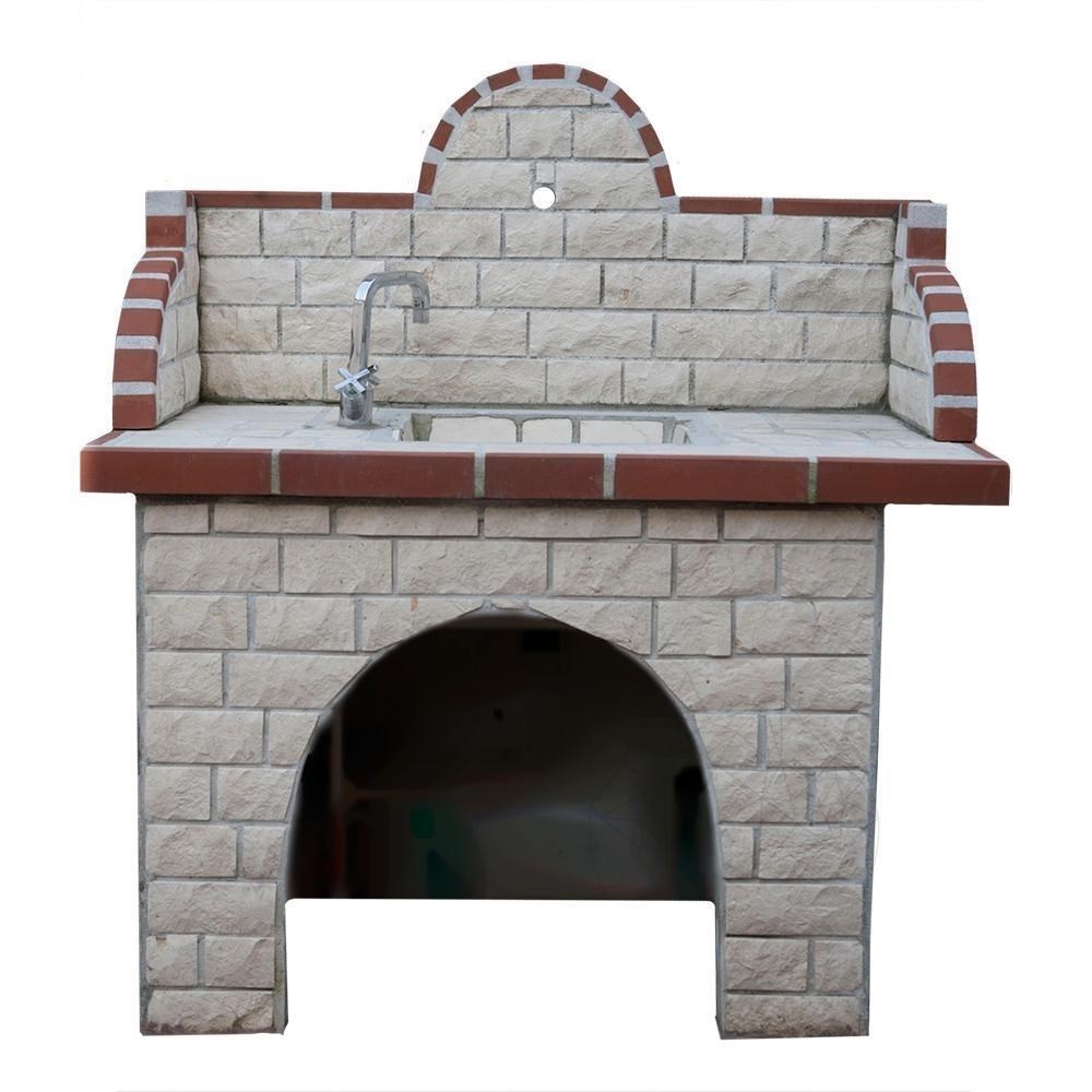 Set Mobilier Gradina Mediteraneo - Masa + Chiuveta pt Gratar (135x120x60 cm, 450 kg, piatra naturala Vratza, caramida)