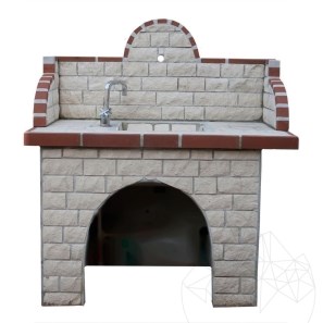 Set Mobilier Gradina Traditional - Masa + Chiuveta pt Gratar (135x120x60 cm, 450 kg, piatra poligonala Homa, caramida)