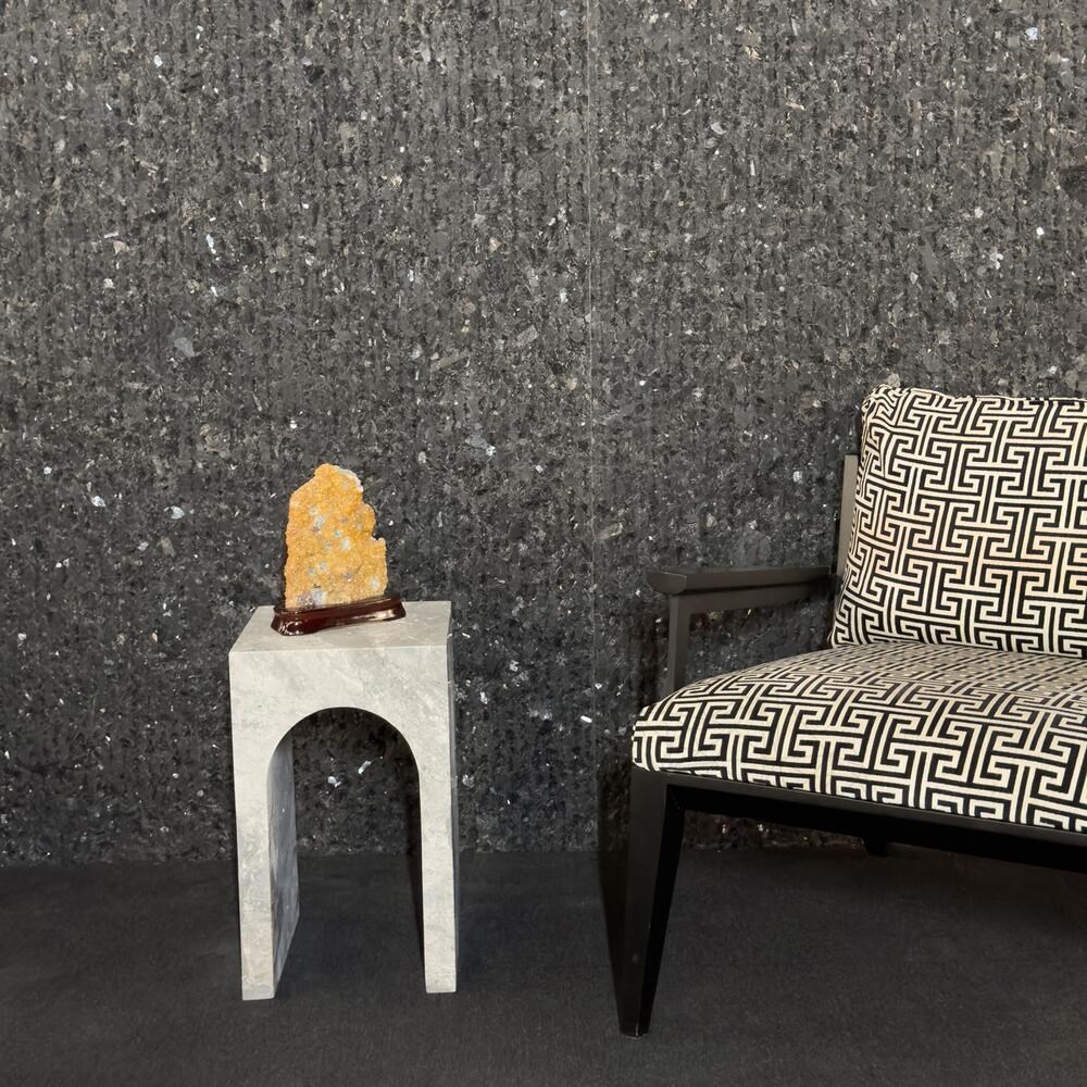 Această masă laterală este realizată din marmură Tundra Grey, renumită pentru nuanțele sale subtile de gri și venaturile delicate care conferă un aspect natural și sofisticat.