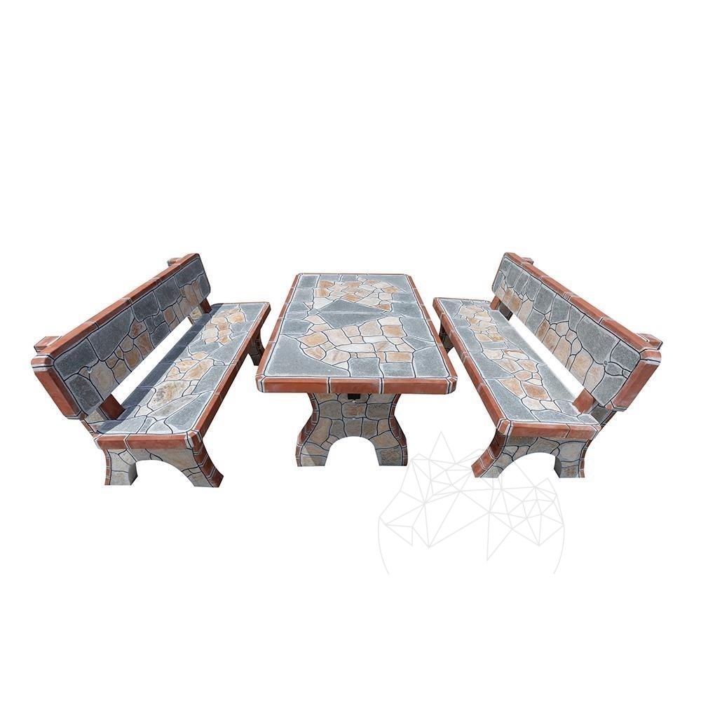 Set Mobilier Gradina Traditional (masa: 130x80x71cm, banca: 140x55x86cm, 620 kg/set, piatra poligonala, caramida)