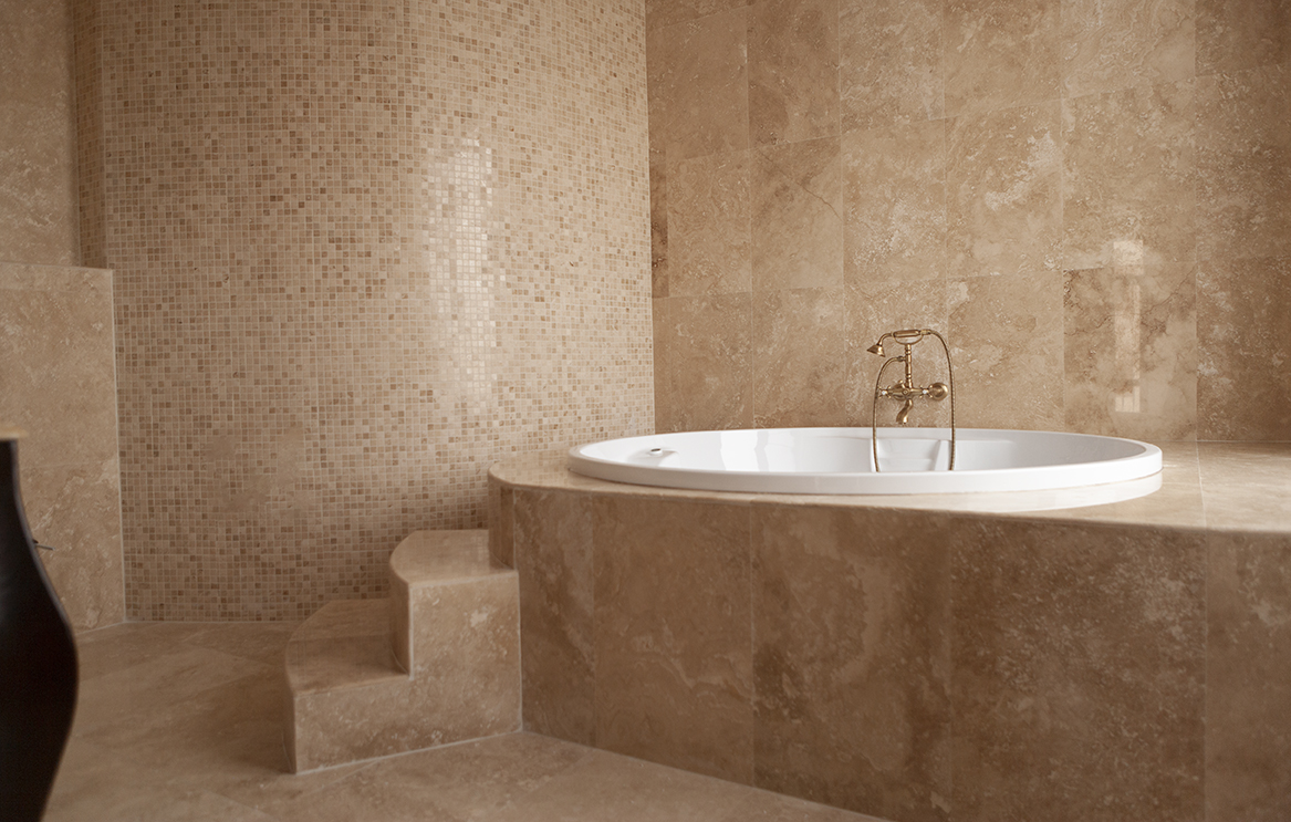 2. Amenajarea baii cu travertin – o amenajare baie in culori calde