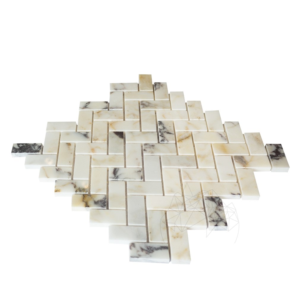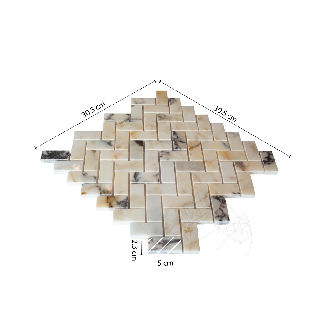 Mozaic Marmura Arabescato Chevron Polisat, 2.3 x 5 cm