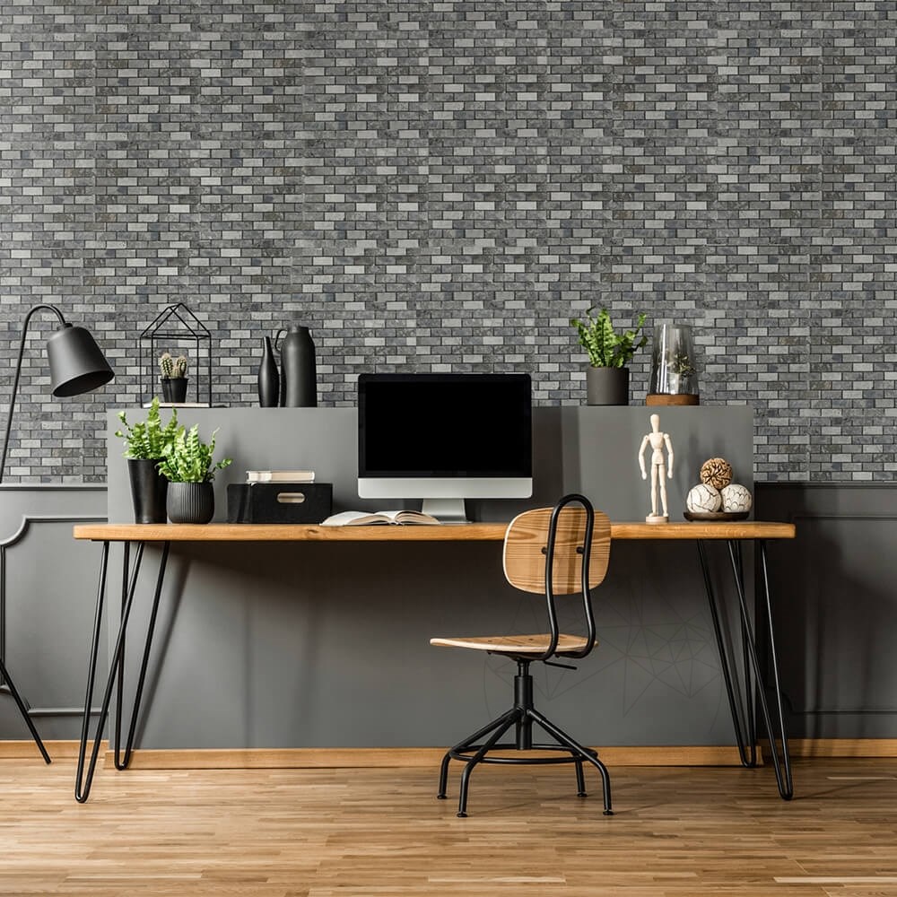 Se livreaza mozaic marmura Ceppo Grey de dimensiuni standard: 30x30x1 cm.  Dimensiunile pietrelor din care acesta este alcatuit sunt 2.3x4.8 cm, similar cu travertin Latte polisat 2.3x4.8 cm si alaturi de travertin Classic scapitat 2.5x5 cm. Finisajul acestui tip de mozaic este mixt, in sensul ca se foloseste marmura Ceppo Grey cu 3 tipuri de finisaj: polisat, mat, scapitat. Acest mixaj ofera avantajul unui aspect surprinzator, ascunzand luciul fascinant al acestui tip de marmura printre unele bucati de o stralucire molcoma si altele cu o fata bruta, rezultata din lovituri de ciocan. Montaj mozaic pe plasa se executa din bucati de piatra lipite flexibil pe o plasa. Se folosesc ardezie, marmura, travertin, onyx, iar pietrele componente au diverse dimensiuni, forma si culori. Montajul se face cu adeziv, cu sau fara rosturi.