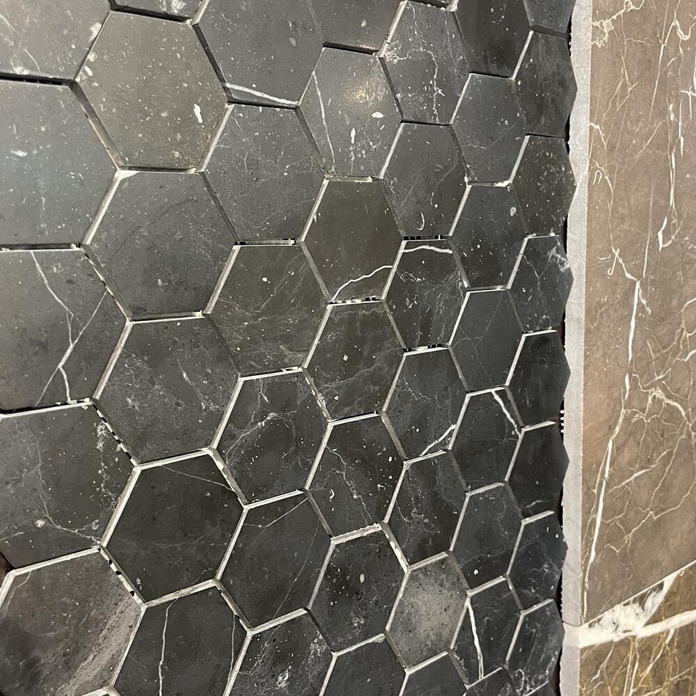 Mozaic Marmura Nero Marquina Hexagon Mata