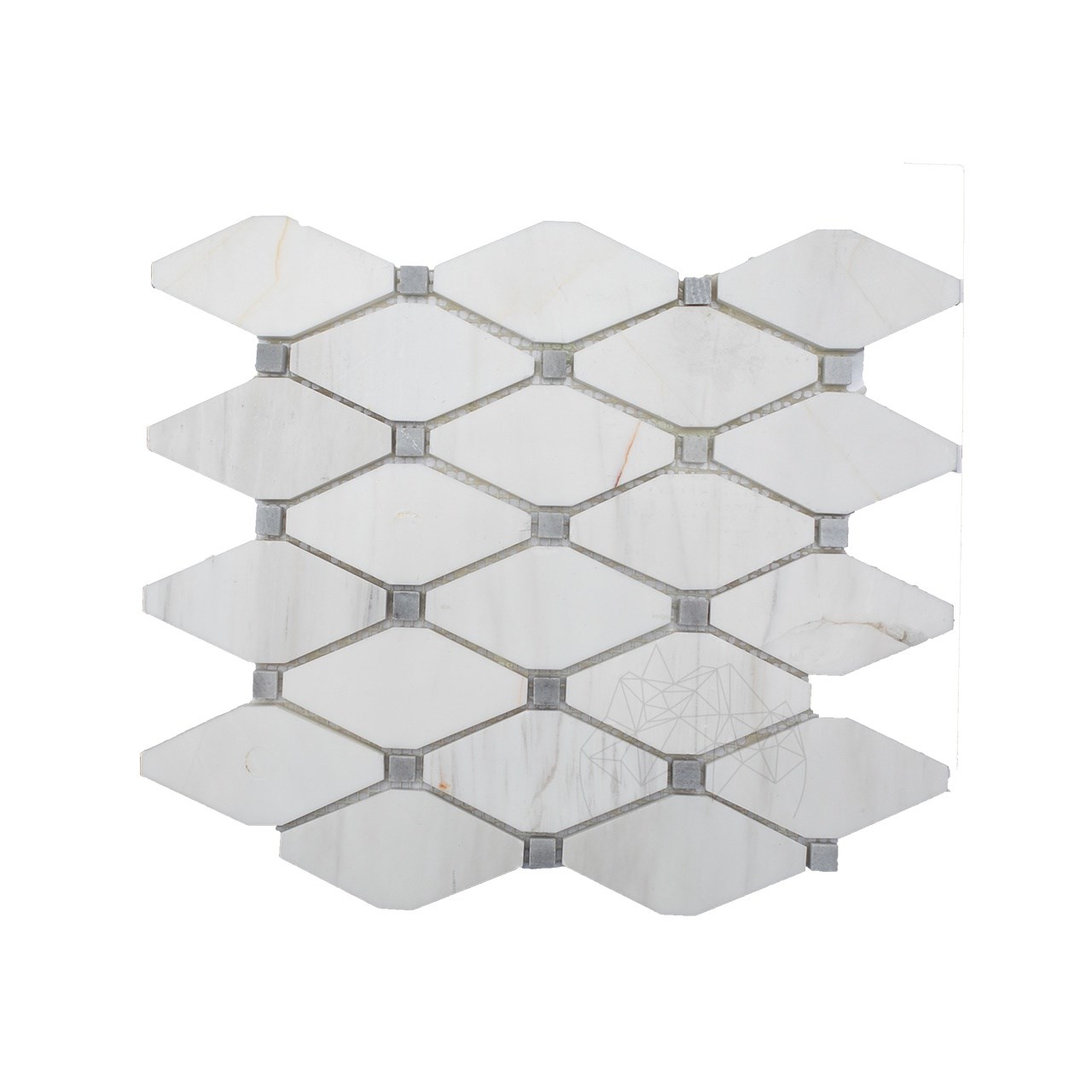 Mozaicul de marmura White & Grey Melia Polisata, cu dimensiunea de 24.5 x 26.5 cm, reprezinta o combinatie spectaculoasa de eleganta si rafinament. Combinatia celor doua modele de marmura sub forma de romb, fac ca acest produs fabricat cu maiestrie sa exceleze prin aspectul sau fascinant si calitatea premium.