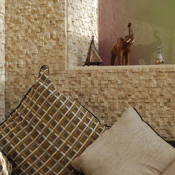 Frumusetea clasica a travertinului este transpusa intr-o noua dimensiune datorita acestui mozaic din travertin Classic, scapitat 3D. In orice amenajare interioara, induce o senzatie autentica naturala: parca simti vibratia acelor pietre enorme din care piesele au fost taiate. Impresia aceasta se pastreaza fie ca montezi mozaicul in baie, bucatarie, hol sau birou. Culorile blande ale acestei pietre naturale se potrivesc foarte bine si in amenajarile exterioare: placari de garduri, brauri, fatade, la construirea de ancadramente diferite etc. Nu doar in proprietatile rezidentiale, dar si in cele publice mozaicul din travertin Classic 3D, scapitat, creeaza o atmosfera intima si in acelasi timp, sofisticata.