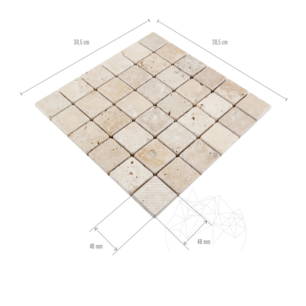 Mozaic Travertin Classic Antichizat, 4.8 x 4.8 cm