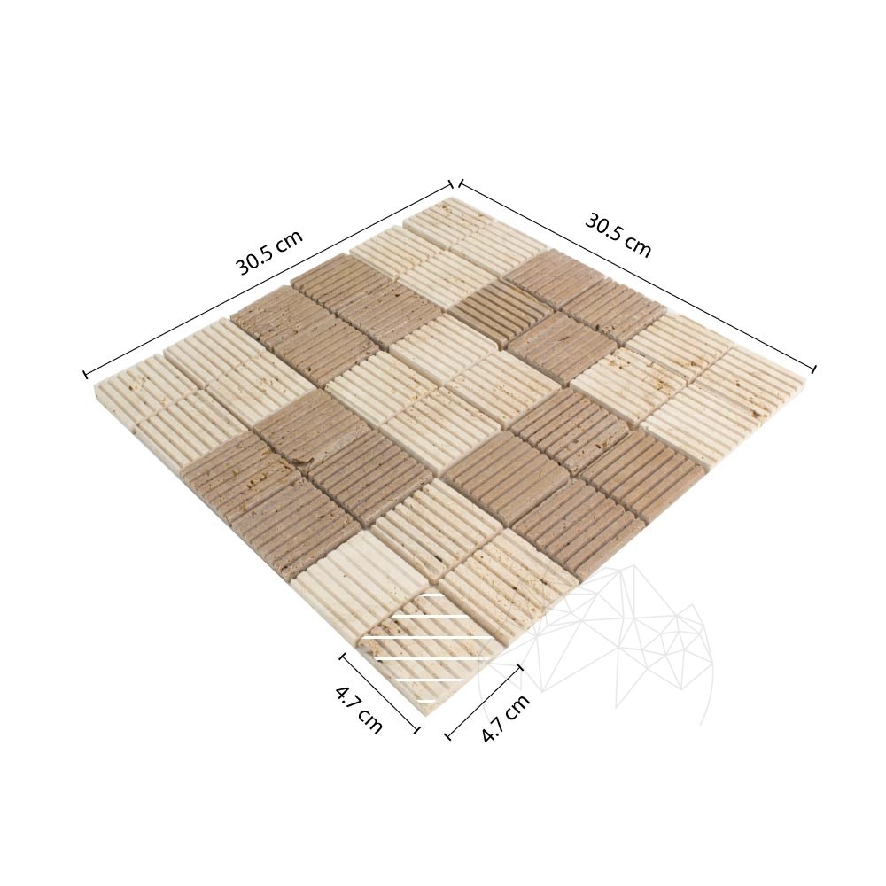 Mozaic Travertin Classic-Noce Rizat, 4.7 x 4.7 cm