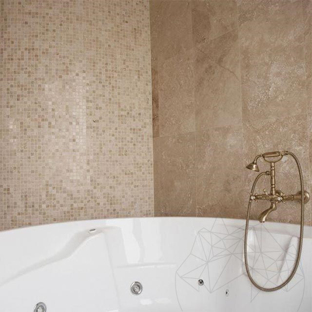 In materie de amenajari interioare, aspectul polisat al travertinului Classic nu poate fi egalat decat de competitorul sau, marmura. Aceasta piatra naturala induce o atmosfera primitoare si se poate asocia cu o larga varietate de pardoseli din travertin. Astfel, cu acest produs se pot placa pereti de bai, bucatarii, spa-uri (spatii umede) sau chiar sufragerii si holuri. Functioneaza si in placarile orizontale: pardoseli, blaturi, glafuri, chenare decorative etc. Un alt avantaj major oferit amenajarilor interioare este instalarea usoara a acestui mozaic din travertin Classic, polisat. Indiferent de mediu, privat sau public, mozaicul din travertin Classicm cu finisaj polisat, scoate din anonimat orice amenajare interioara, conferindu-i o personalitate aparte.