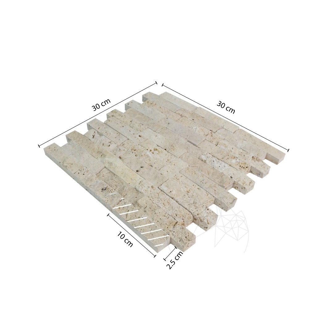 Mozaic Travertin Classic Scapitat, 2.5 x 10 cm