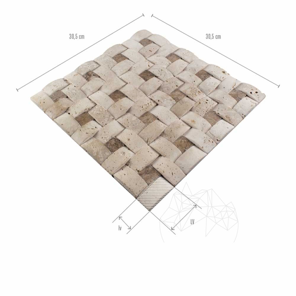 Mozaic Travertin Classic si Latte 3D Konkav Antichizat
